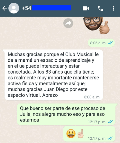 Tuve un profesor presencial, pero me desanimé, y no volví a hacerlo durante muchos años, en la pandemia decidí retomar y encontré a Juan Diego con su metodología, hago parte del Club Musical donde aprendemos de solfeo, lectura de partituras que es un complemento increíble cuando uno está tocando las canciones.